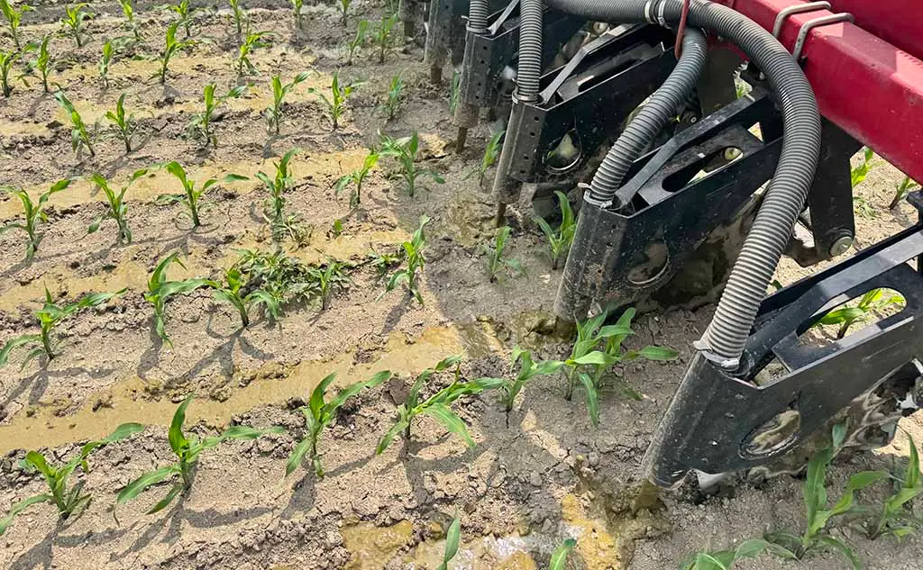This system supports efficient nutrient management by applying manure directly during active crop growth, improving utilization and reducing nutrient loss in modern farming operations.